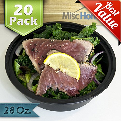 Perfect for meal prepping multiple meals at once, freezing in the freezer, microwaving (no lid), then washing in the dishwasher (recommended top rack) before next use. Control your portions and count your macros! Our meal prep containers are airtight and leak-resistant. They can be reused more often than those made by many of our competitors. More details: Food-safe: only high-quality, food-grade virgin polypropylene is used. Toxin-free: contain no BPA, phthalates or toxic additives. Made in Ontario, Canada to strict FDA and CFIA guidelines. Microwave (no lid) & Dishwasher safe. Comes with our meal prepping ebook giving you tips, and recipes.the +Best Deal+[20 Pack] Black Round Meal Prep Containers Durable Plastic Reusable Food Storage Container Microwave & Dishwasher Safe w/ Airtight Lid For Portion Control and Bento Box Food Prep The innovative square shape of Easy Find Lids containers means more food storage can fit into your refrigerator, pantry or cooler at the same time. When empty, containers easily nest and stack.Find the right lid, right now! Featuring the Rubbermaid Easy Find Lids system, lids snap to the container base and other lids so that the right lid is always at your fingertips. The square-shape, graduated sized containers give you more space in the fridge or cupboard. Organizing your kitchen just got easier.+Best Deal+[20 Pack] Black Round Meal Prep Containers Durable Plastic Reusable Food Storage Container Microwave & Dishwasher Safe w/ Airtight Lid For Portion Control and Bento Box Food Prep is best for youSize:28 Oz | Color:Black Stay Organized During Your Fitness Journey Plan your meals ahead of time for your health and meal prep with confidence. Stop buying unhealthy foods at expensive prices and start packing smart lunch boxes and portion control containers! Perfect for preparing many meals at once, portion control, and managing your macronutrients Entertain Professionally. Send your guests home with attractive take home bento boxes. They will think of you when they use it for meal prepping again and again! Best Value! Our 20 pack pricing beats the price per unit cost of Freshware, Meal Prep Haven, Fitpacker, Lift, Pakkon, and all other distributors of comparable meal prep containers. Compare and save with MiscHome! Trust Our Quality. MiscHome’s #1 Meal prep containers are made of 100% BPA free food safe materials. Our products are tested by SGS, a world leader in product safety testing, and are certified by the FDA as food safe. Pack Smart, Save Space These conveniently sized (h:2.25' Diameter: 7.25') food storage containers are stackable, making them the ultimate space savers. Prepare meals ahead of time and store them in the freezer, or fridge and heat them in the microwave (without lid) for easy, healthy meals anytime. Wash them in the dishwasher (top rack recommended) Satisfaction Guaranteed You will love our meal prep containers or your money back. So try out our meal prep/ portion control/ 21 day fix/ food storage containers and add MiscHome to your cart today!