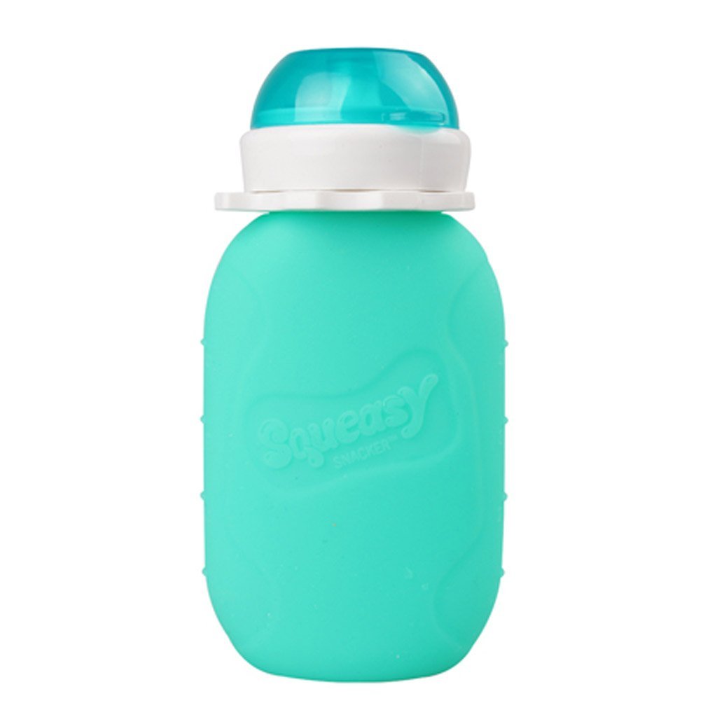 • The Squeasy Snacker 6oz Silicone Reusable Food Pouch - Aqua is a