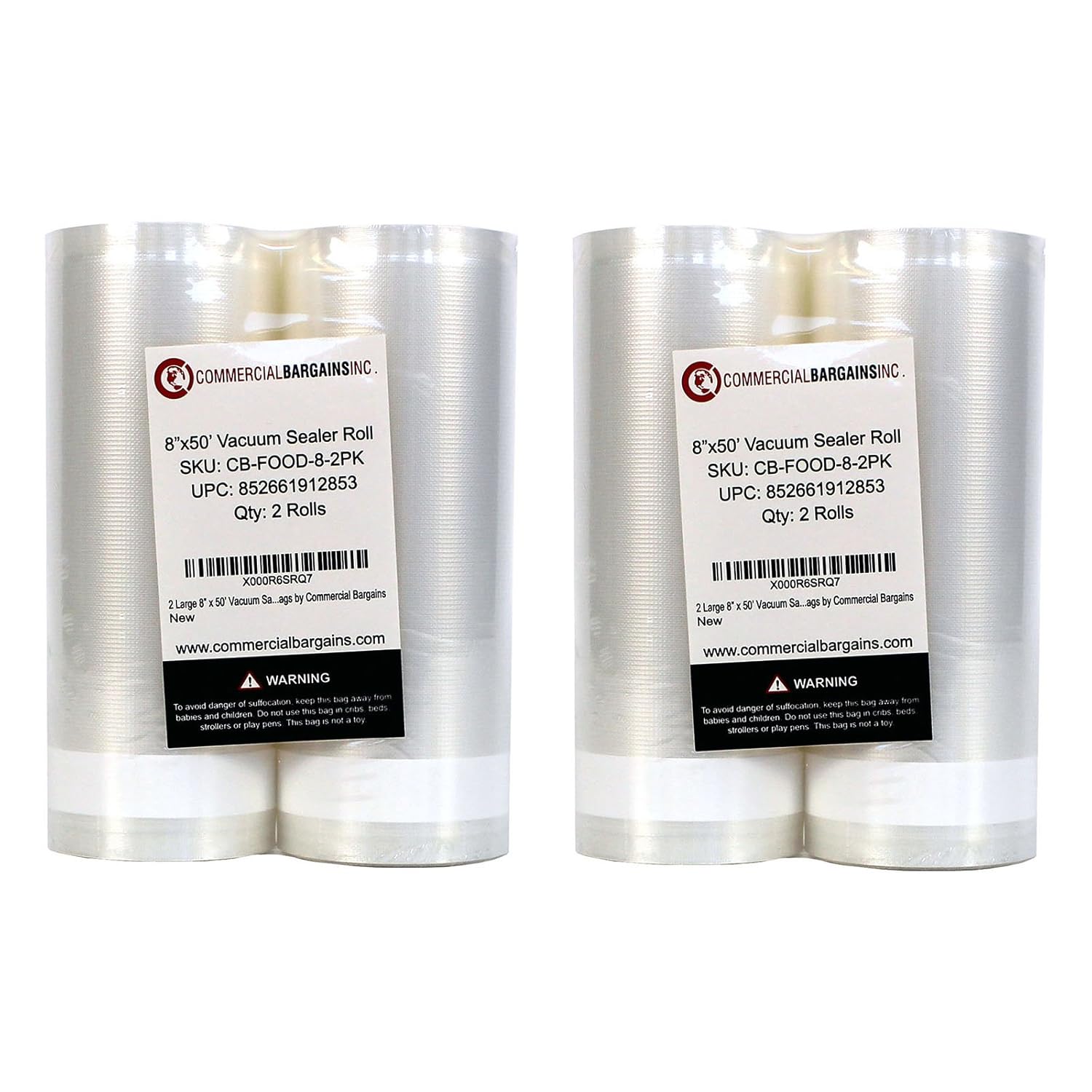 • The Commercial Bargains 4 Large 8" x 50' Vacuum Saver Rolls Commercial Grade Food Sealer Bags is a