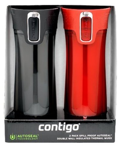 • The Contigo Autoseal Bella Double Wall Insulated 2-Pack Travel Mug, 14-Ounce (Red / Black) is a