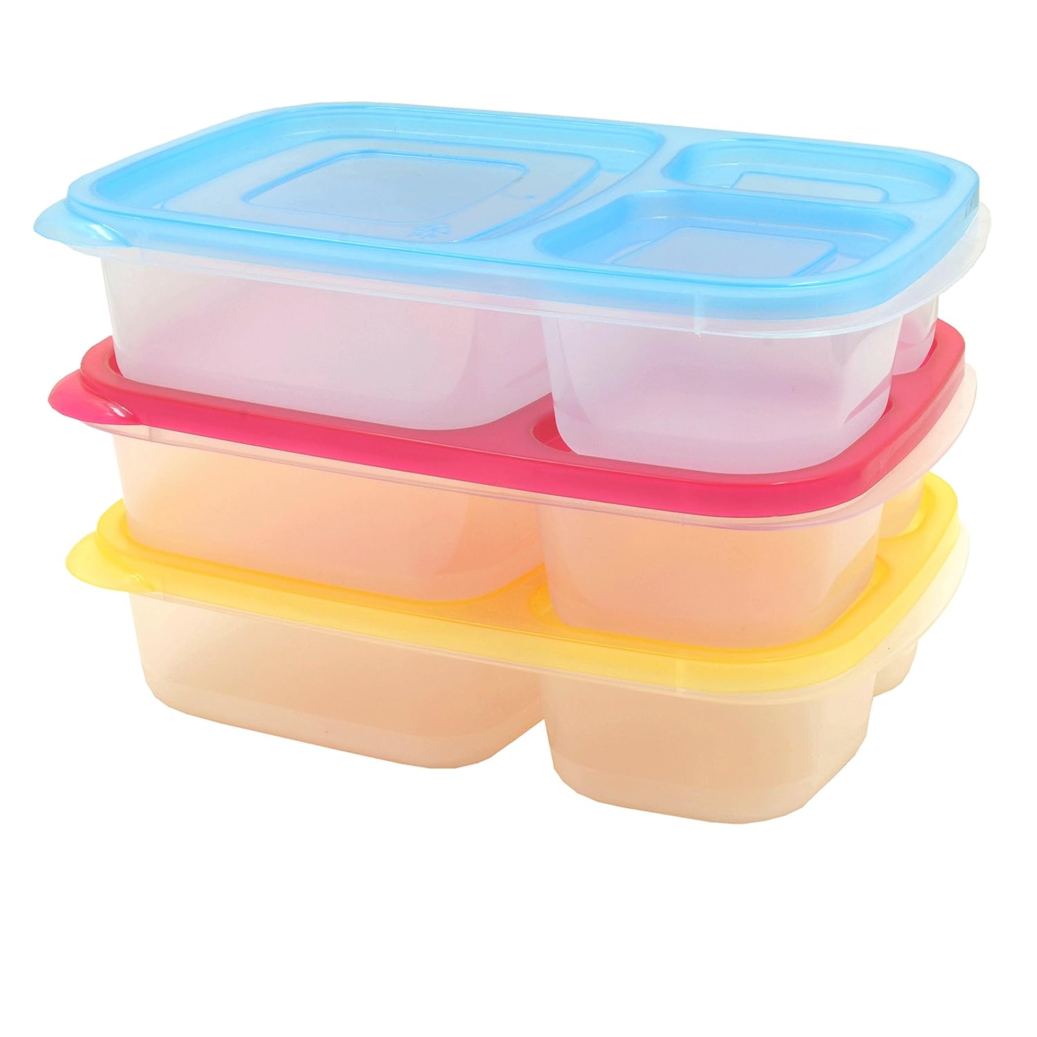 FIXBODY 3-Compartment Bento Lunch Box Containers for Kids & Adults Multi Color Containers with Lids, Set of 3 best Food Storage