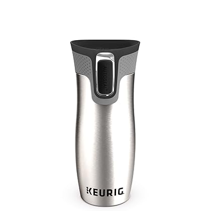 • The Keurig Stainless Steel Travel Mug West Loop, 14 oz, Silver is a