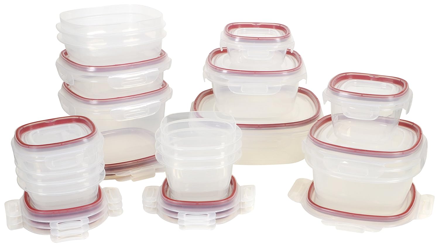 Perfect for meal prepping multiple meals at once, freezing in the freezer, microwaving (no lid), then washing in the dishwasher (recommended top rack) before next use. Control your portions and count your macros! Our meal prep containers are airtight and leak-resistant. They can be reused more often than those made by many of our competitors. More details: Food-safe: only high-quality, food-grade virgin polypropylene is used. Toxin-free: contain no BPA, phthalates or toxic additives. Made in Ontario, Canada to strict FDA and CFIA guidelines. Microwave (no lid) & Dishwasher safe. Comes with our meal prepping ebook giving you tips, and recipes.the Rubbermaid Easy Find Lids Lock-its Food Storage Container, BPA-free Plastic, 34-piece Set (1882084) The innovative square shape of Easy Find Lids containers means more food storage can fit into your refrigerator, pantry or cooler at the same time. When empty, containers easily nest and stack.Find the right lid, right now! Featuring the Rubbermaid Easy Find Lids system, lids snap to the container base and other lids so that the right lid is always at your fingertips. The square-shape, graduated sized containers give you more space in the fridge or cupboard. Organizing your kitchen just got easier.Rubbermaid Easy Find Lids Lock-its Food Storage Container, BPA-free Plastic, 34-piece Set (1882084) is best for youSize:34-Piece Keep all types of food fresh and secure with the Rubbermaid Easy Find Lids Lock-its Food Storage Container 34-piece Set. Featuring four locking tabs on the lid, food containers are securely sealed to help prevent spills. Lids snap to container bases and to other lids to help make finding the right lid quick and easy. Each lid has a built-in rubberized seal for easy cleaning and to keep food fresh. BPA-free.