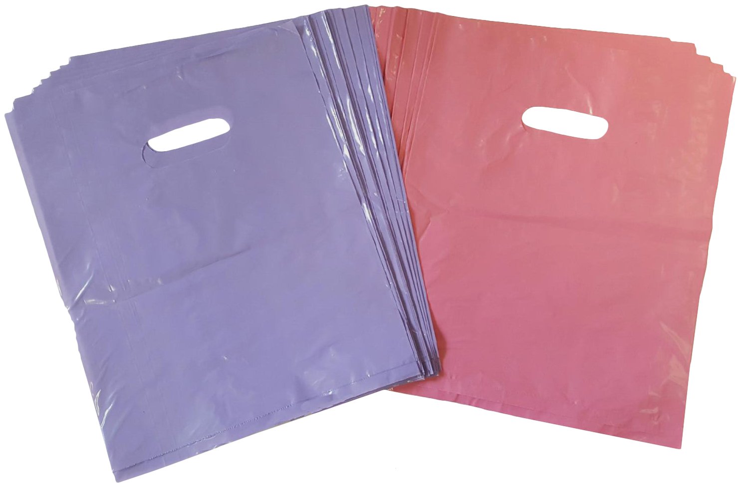 You buy 100 Purple and Pink Glossy Merchandise Bags, Shopping Bags, 12” X 15” with Die Cut Handle, No Gusset, 1.25 Mil.with Coupon : ROLL30 will be discounted 30% price