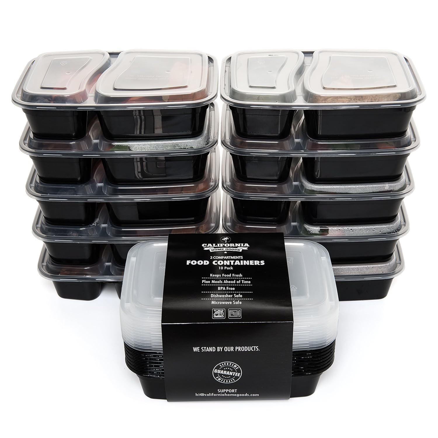 • The California Home Goods 2 Compartment Reusable Food Storage Containers with Lids, Microwave and Dishwasher Safe, Bento Lunch Box, Stackable, Set of 10 is a