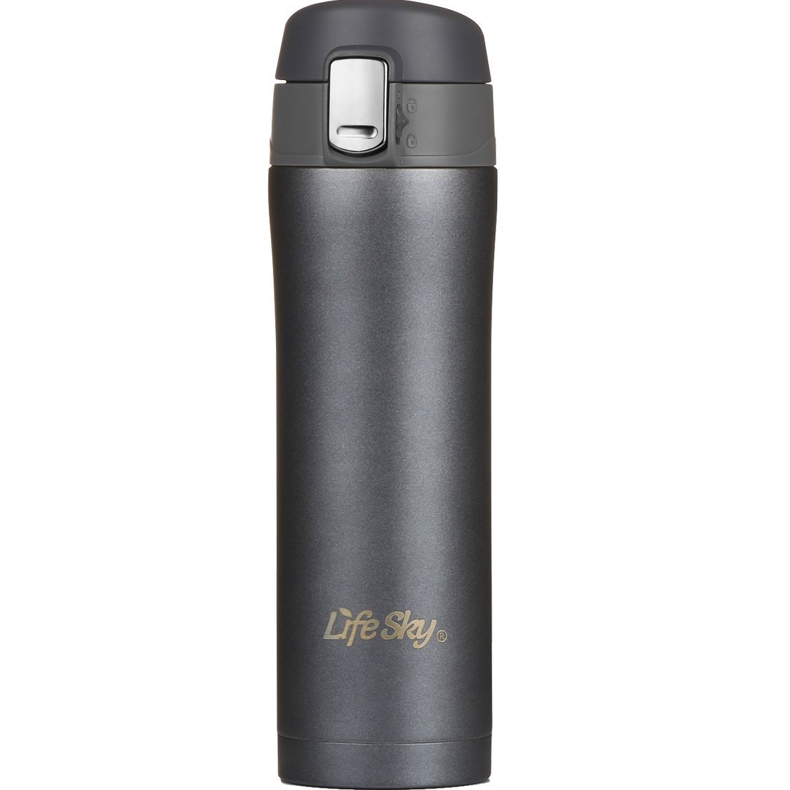 • The LifeSky Insulated Travel Coffee Mug, Stainless Steel (16 oz), BPA-Free , Lid Lock (Dark Gray) is a