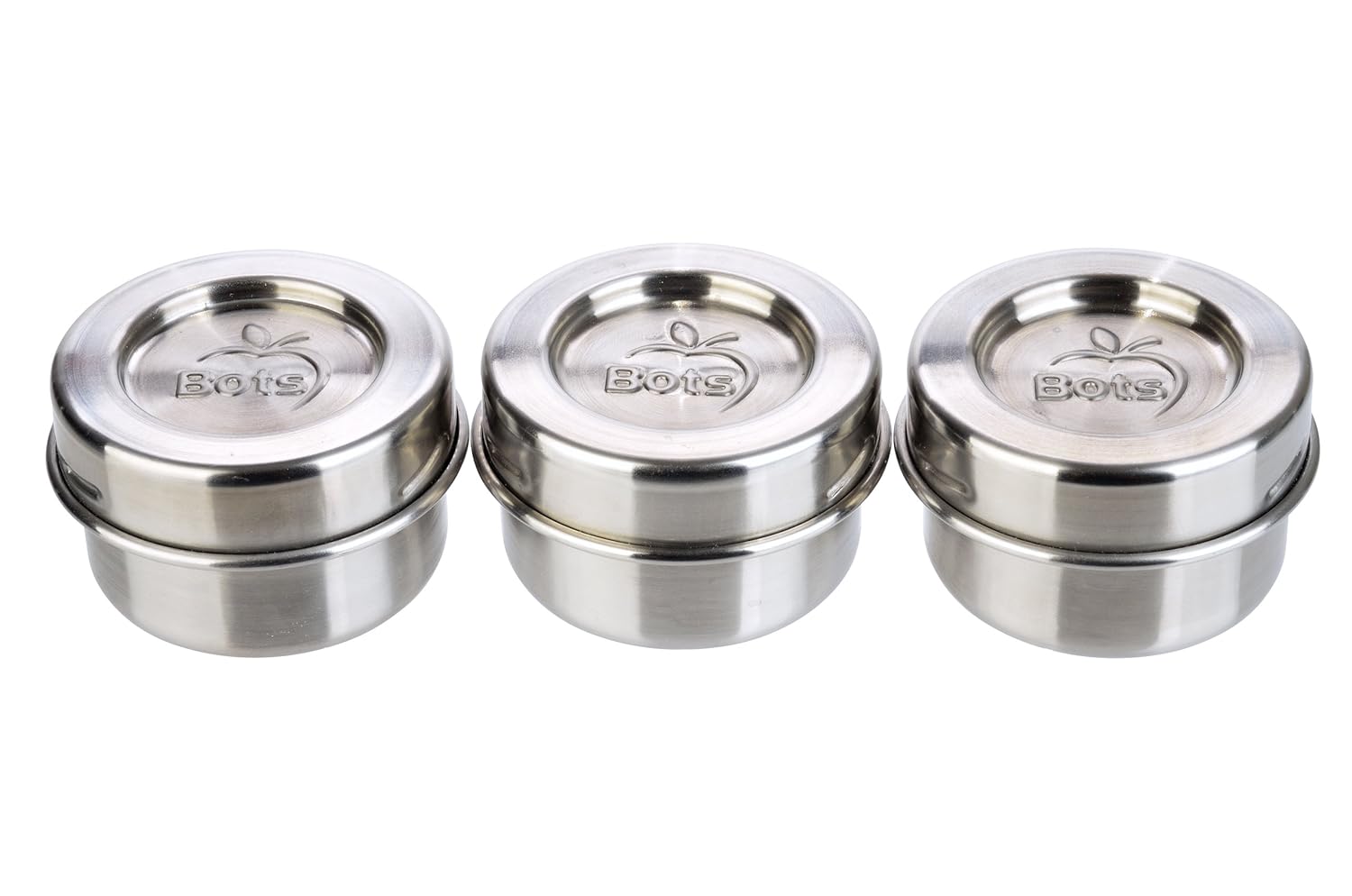 • The LunchBots Tiny Leak Proof Dips Condiment Containers, Set of 3 (1.5 oz) - Mini Condiment Cups Provide Perfect Portions – Spill Proof in Lunch Bags and Boxes - Premium Stainless Steel, Dishwasher Safe is a