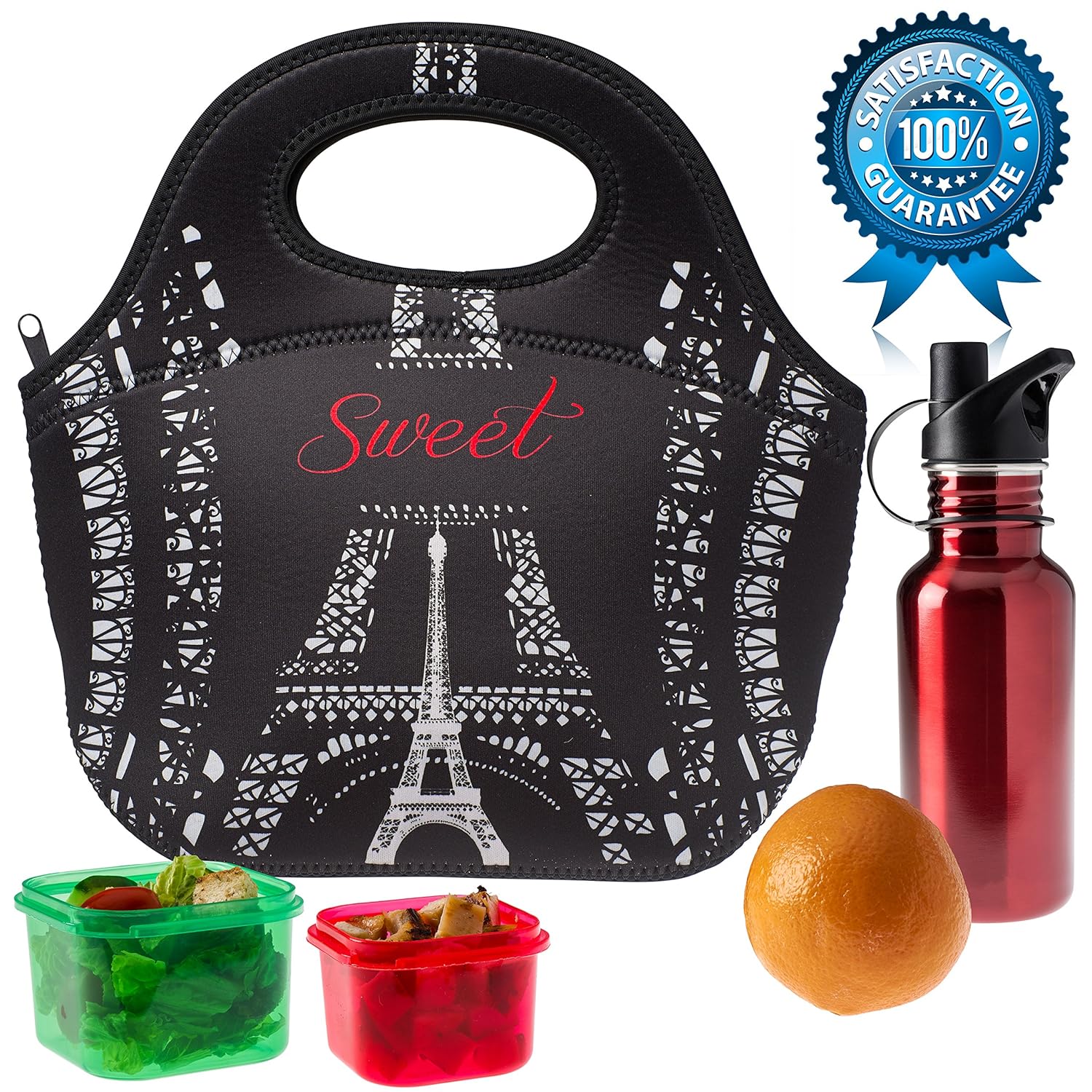 • The Neoprene Lunch Bag, Insulated Reusable Fashionable Lunch Box Tote | Large, Highest Quality, Holds More and Insulates Better | Paris Design by Sweet Concepts is a