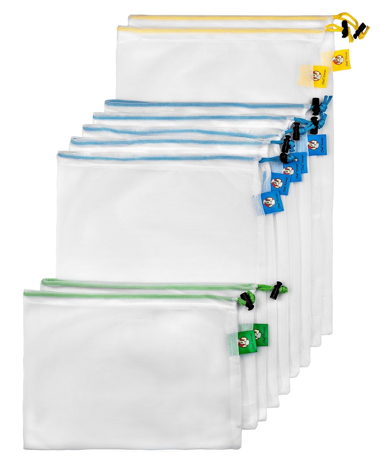 You buy Chef Rimer Reusable Produce Bags, 9 Sturdy Lg Med Sm Premium Washable Grocery Mesh Polyester See Through Set For Shopping Fruit, Vegetable & Kids Snack Sandwich Storage - Start Your Plastic Free Life!with Coupon : ROLL30 will be discounted 30% price