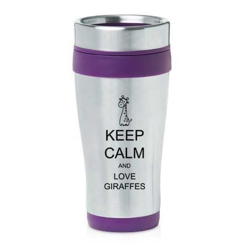 Purple 16oz Insulated Stainless Steel Travel Mug Z423 Keep Calm and Love Giraffes best Food Storage