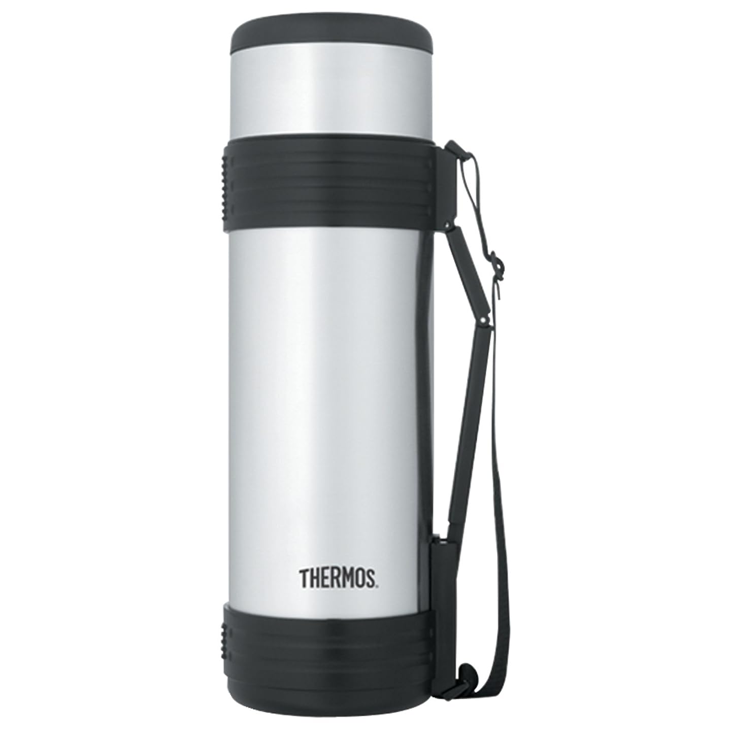• The Thermos 61 Ounce Vacuum Insulated Beverage Bottle with Folding Handle, Stainless Steel is a