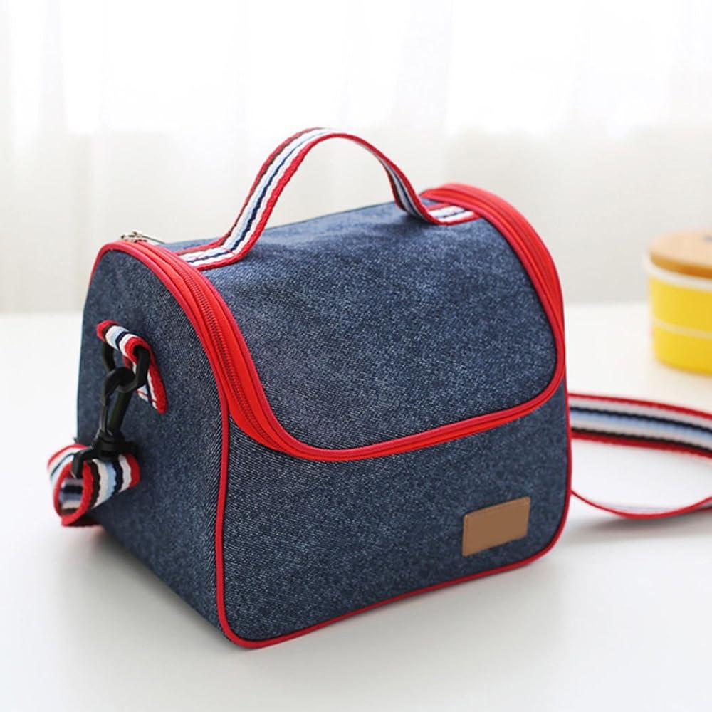 You buy Lunch Bag, Denim Insulated Thermal Cooler Lunch Box Bento Tote Bag Durable Carry Bag With Zip Closure and Adjustable Shoulder Strap for Adults, School Kids, Students, Men, Women (22.5 x 16 x 19.5cm)with Coupon : ROLL30 will be discounted 30% price