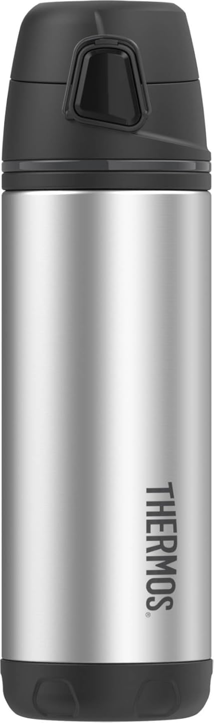 • The Thermos ELEMENT5 16 Ounce Vacuum Insulated Stainless Steel Backpack Bottle, Black/Gray is a