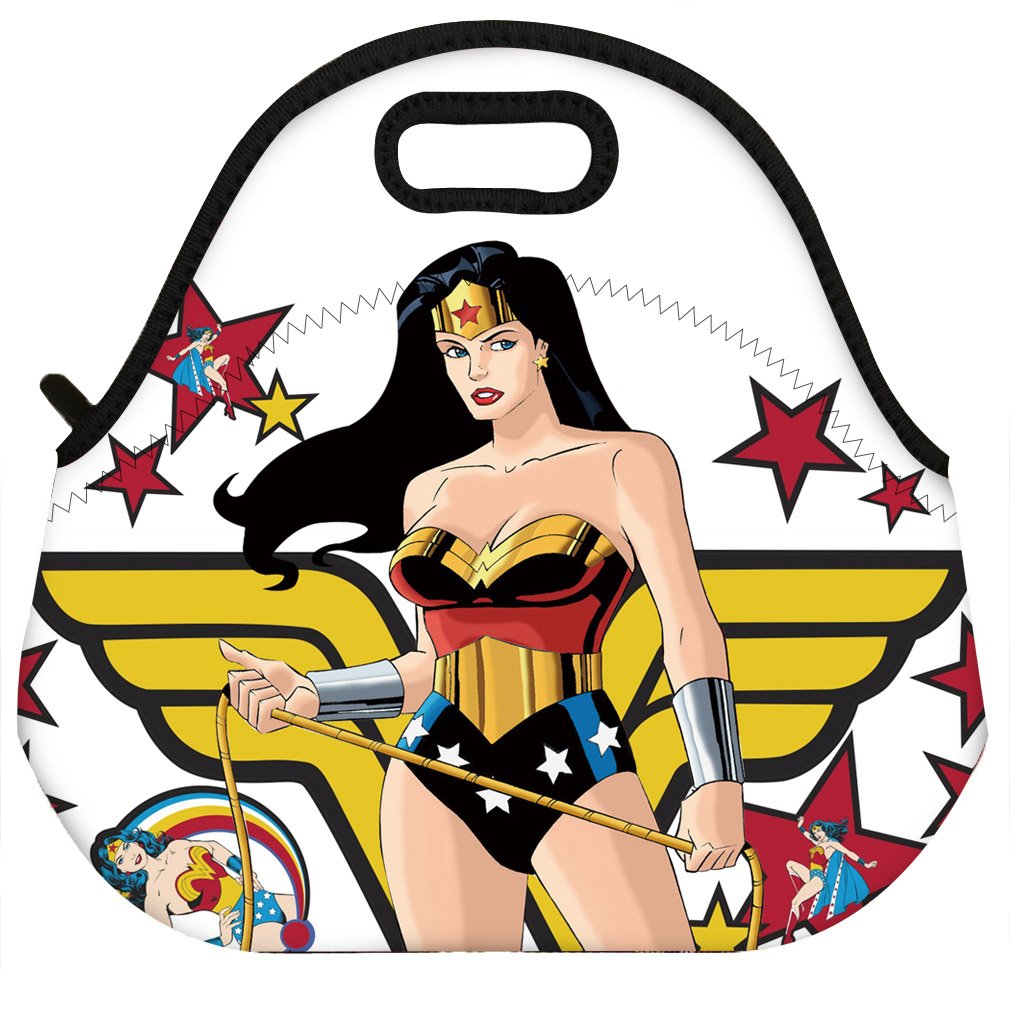 • The VIPbuy Waterproof Women Mens Kids Neoprene Thermal Insulated Lunch Bag Box Tote for School Work Outdoor , Comic Heroine Wonder Woman Pattern is a