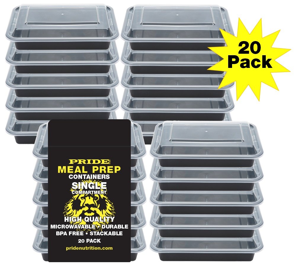 Perfect for meal prepping multiple meals at once, freezing in the freezer, microwaving (no lid), then washing in the dishwasher (recommended top rack) before next use. Control your portions and count your macros! Our meal prep containers are airtight and leak-resistant. They can be reused more often than those made by many of our competitors. More details: Food-safe: only high-quality, food-grade virgin polypropylene is used. Toxin-free: contain no BPA, phthalates or toxic additives. Made in Ontario, Canada to strict FDA and CFIA guidelines. Microwave (no lid) & Dishwasher safe. Comes with our meal prepping ebook giving you tips, and recipes.the Meal Prep Containers - Pride 28oz Single Compartment 20 Pack Microwaveable BPA Free Durable Stackable Freezable Food Tupperware with Lids The innovative square shape of Easy Find Lids containers means more food storage can fit into your refrigerator, pantry or cooler at the same time. When empty, containers easily nest and stack.Find the right lid, right now! Featuring the Rubbermaid Easy Find Lids system, lids snap to the container base and other lids so that the right lid is always at your fingertips. The square-shape, graduated sized containers give you more space in the fridge or cupboard. Organizing your kitchen just got easier.Meal Prep Containers - Pride 28oz Single Compartment 20 Pack Microwaveable BPA Free Durable Stackable Freezable Food Tupperware with Lids is best for youYour search for the Highest Quality Meal Prep Containers is finally over! Pride Meal Prep Single Compartment Containers are one of the best ways to lose weight, eat clean, control your portions and build muscle. Pride meal prep containers are the choice of body builders, anyone on a diet plan that requires meal prep, and those of us with a busy schedule that wants to eat a healthy and balanced lifestyle. Product Highlights -HIGH QUALITY - BPA FREE - DURABLE DISHWASHER & FREEZER SAFE - STACKABLEWe have been in the health and fitness industry for almost 2 decades and have worked with many professional athletes as well as amateurs who used our products to help them perform at their best. We know how important it is to provide our customers with the best products on the market. We take great Pride in our products and do not try to cut costs by using lower quality materials as many other companies do. When you purchase from us you can be absolutely confident you are getting the best quality and safest products you can find. Being in the industry for so long, the most important thing to us is still CUSTOMER SATISFACTION. We just ask that you give us a shot and if you are not completely satisfied with our product for whatever reason, just let us know within 30 days and we will refund you 100% of your money. So Click the Add to Cart button and try our Pride Meal Prep Containers for yourself today at no risk. And don’t forget to check out our store for our full line of supplements and meal prep containers to see if there is anything else you need