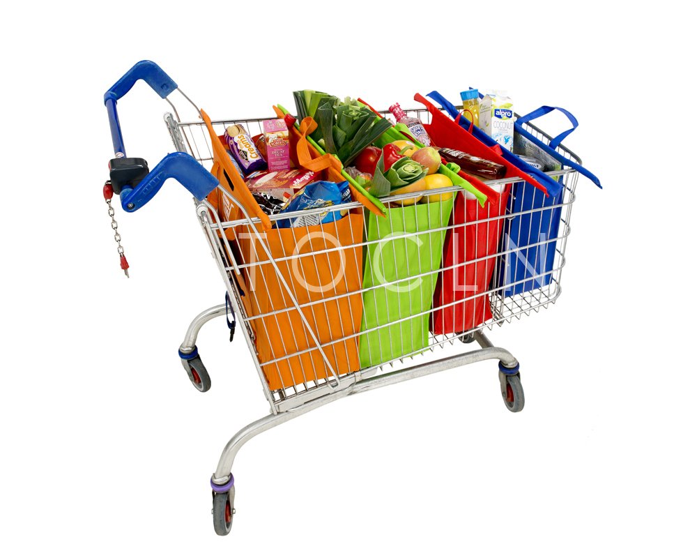 • The TOCLN: Reusable Shopping Cart Trolley Bags Set of 4, with Velcro, Detachable, Pep board on the Bottom for Sturdiness-NO Sagging,Insulated Frozen/Hot Foods Bag, Suitable For USA and Canada.Heavy Duty is a
