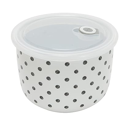 the Black and White Polka Dots Leftovers Earthenware XL Souper Bowl with Lid save up to 36 k-cup coffee pods. Easy to slide in and out to get pod you want. . Enjoy your coffee with simple organize.Full flavor starts with fresh coffee. The Friis Coffee Vault - Coffee Savor blocks out light and air to seal in flavor. The Friis Freshness Valve vents away continuous CO2 gases that are a result of the roasting process. Stored in a cool, dry place, your coffee stays rich and full of flavor. Simply put, the Friis Coffee Vault - Coffee Savor keeps your coffee fresh longer. The Friis Coffee Vault - Coffee Savor model features a 64 fluid -Ounce. stainless steel base with an all black BPA free polymer lid. It measures 7-1/2-InchH by 5-InchD. It holds 16-Ounce (1 pound) of coffee beans. Also included is a measuring spoon, one year supply of Friis freshness valves, getting started instructions and the Art of Flavor booklet.