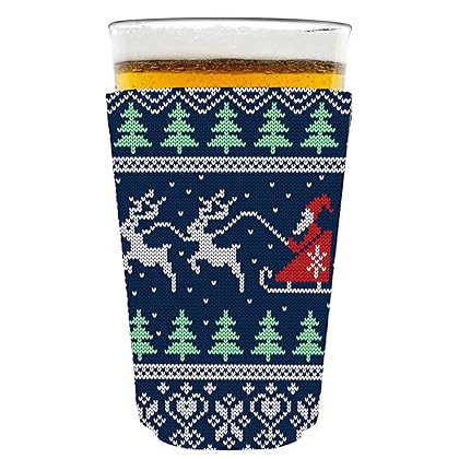 Coolie Junction Christmas Sweater Pint Glass Coolie is best for youYour eggnog will look extra festive this holiday season with this Christmas sweater coolie! Made of high quality neoprene (wet suit) material this coolie fits most standard pint glasses (plastic solo cup size option also available) and is collapsible for easy storage. Colors and graphics are digital depictions and may vary slightly on the actual product.