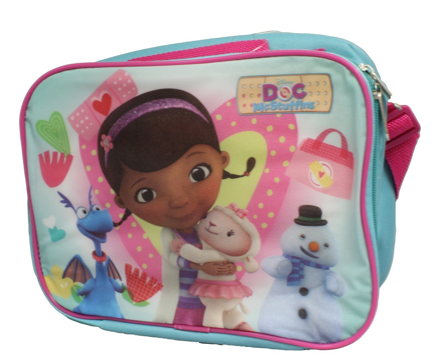 Disney Doc McStuffins Insulated Lunch Box is best for youLunch Bag. Size (Approx.) ~9' x 8' x 4'. Zipper Closure. Carry Handle. Adjustable Shoulder Strap. Licensed Products.