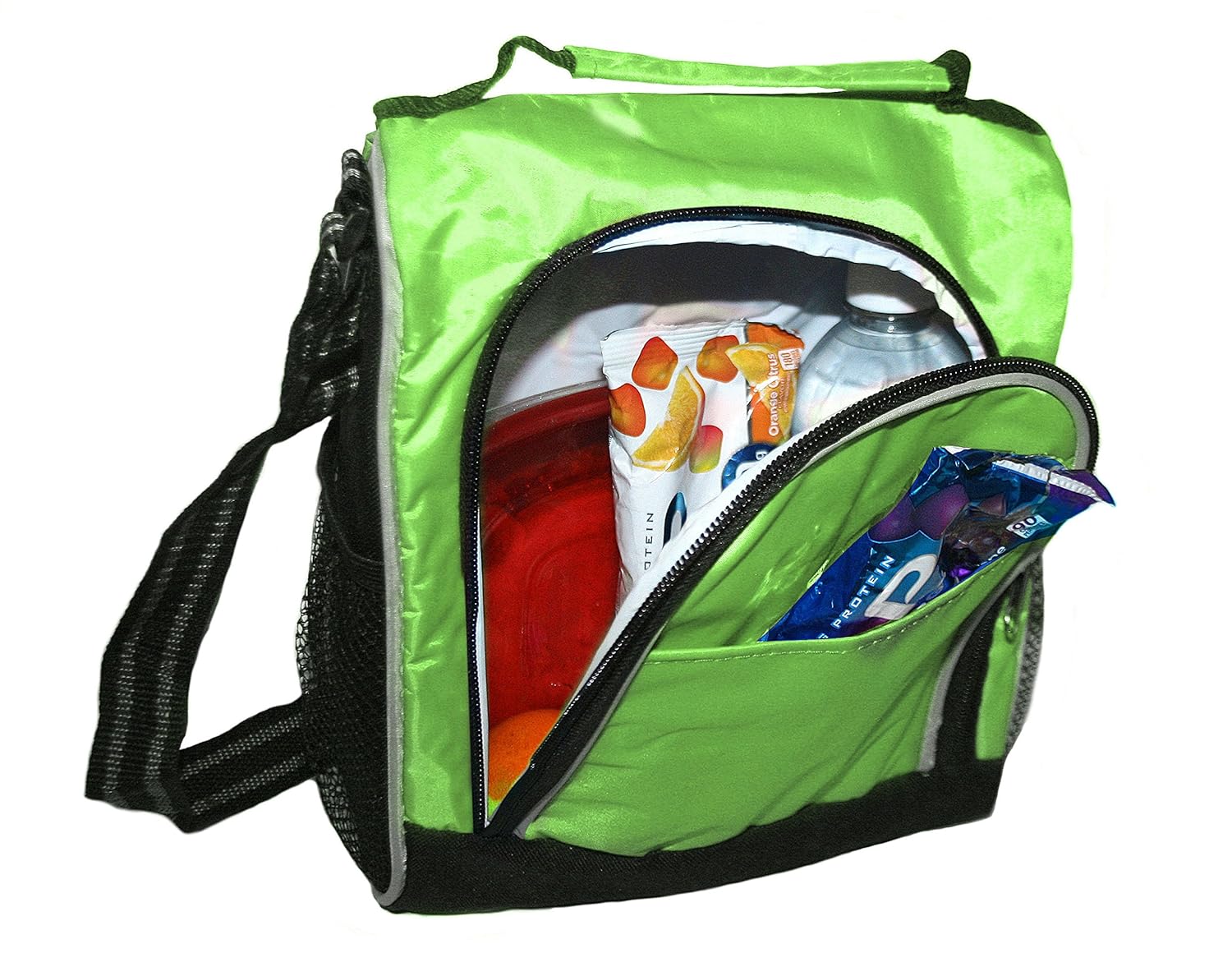 Insulated Lunch Bag With Adjustable Should Strap by Sacko (Green) is best for youColor:Green Dimensions of the bag are 9' W x 10' H x 4.5' D Features Include: Made Of Combo: 70D Nylon/600D Polyester Large Compartment With Front Zippered Access Front Pocket Two Side Mesh Pockets to Hold Your Beverages Adjustable Shoulder Strap