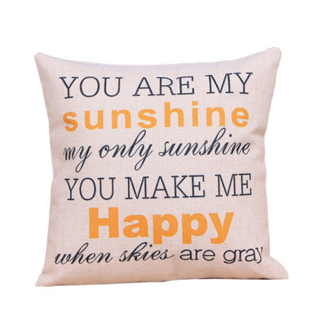 Pillow Case,Haoricu "You are my Sunshine "Cotton Linen Leaning Cushion Throw Pillow Covers Pillowslip Case (B) best Food Storage