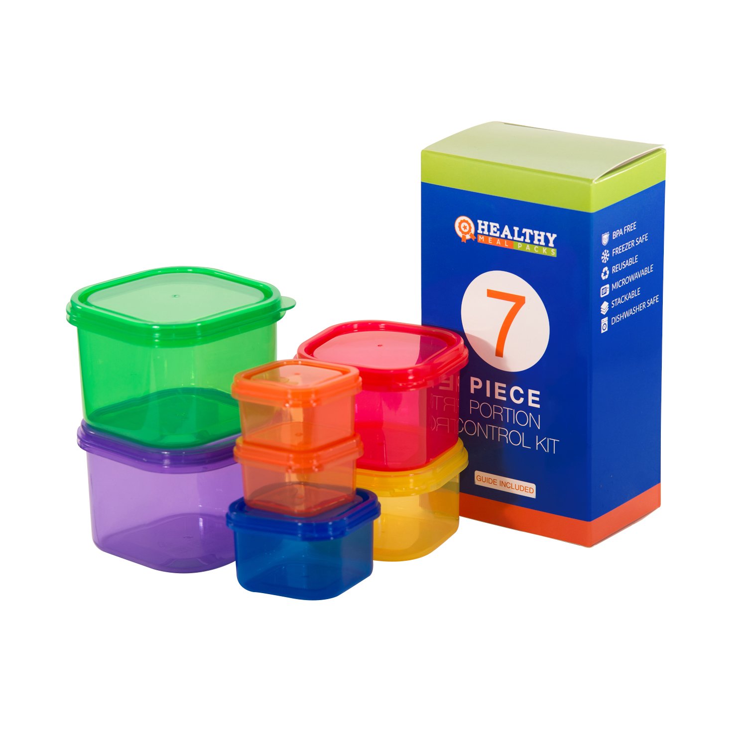 Healthy Meal Packs- 7 Piece Portion Control Containers for Food and Meal.100% Leak Proof with Guide. BPA Free. Freezer, Microwave and Dishwasher Safe. Comparable to 21 Day Fix is best for youProduct Description/Benefit- Observe your weight control diet routine without stress using our brand new 7 piece portion control containers. Made from BPA-free, food safe plastic, each of the 7 containers has a different color which indicates the type of food to be put into it and also the right quantity. This makes it very easy for you to eat well-balanced meal, achieve your nutritional goal and saves you the stress and time of measuring and weighing out each food group. You will find included in this package a pamphlet that explains the colors and the easiest ways to use them. These plastics are microwavable, freezer-safe, reusable, stackable and dishwasher safe. You will definitely find them to be very helpful. A MUST have if you are looking to maintain your current weight, lose or gain extra weight.