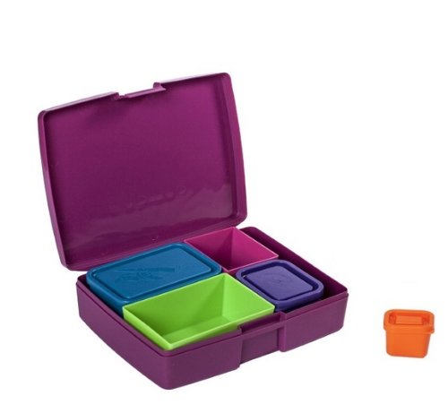 Laptop Lunches Bento-Ware, Leak Proof Containers, Fun Colors is best for youColor:Plum, Magenta, Lime, Purple, Teal, Orange It’s easy, fun, and economical to pack balanced on-the-go meals for school, work, and travel with the Laptop Lunches Bento-ware™ line of Bento Lunch Boxes. Available in 11 cool color combinations. This unique bento-style on-the-go meal container features 5 food compartments (including 3 leak-proof containers), perfect for any menu any time. Pack soup and salad, a sandwich, fruit and yogurt, or a snack pack with fresh grapes, veggies and dip, mixed nuts, and pretzels. With this long-lasting waste-free lunch box, you’ll eat well, reduce food waste, and eliminate the need for plastic baggies, foil and expensive single-serve items. Even the pickiest of eaters will enjoy a meal in this easy lunch box! The sleek, single-unit outer lunch box will eliminate your mess of jumbled, mis-matched containers and the removable inner food containers will accommodate just about anything you pack for your active lifestyle. Laptop Lunches Bento-ware is ideal for promoting balance and achieving portion control. Lunch Box includes: 1 – Outer Container – 9”x7”x2 1/4” with inner containers as follows: 1 – Large Sealable Container – 4.75”x3.12”x2” Holds 1 1/4 Cups 1 – Large Container 4.75”x3.12”x2” Holds 1 2/3 Cups 1 – Medium Sealable Container – 3.12”x2.5”x2” Holds 2/3 Cups 1 – Medium Container 3.12”x2.5”x2” Holds 3/4 Cups 1 – Small Sealable Dip Container – 2”x1.5”x1.5” Holds 1/8 Cup. The Laptop Lunches Bento-ware™ Bento Lunch Box fits perfectly inside the Laptop Lunches Bento-ware™ line of Insulated Bento Carriers, Bento Totes, and Bento Sleeves. The durable plastic containers (not lids) are microwave safe and both containers and lids are dishwasher safe--top rack only (no heat boosters). In addition to allowing for a waste-free meal, the Laptop Lunches Bento-ware™ Bento Lunch Box is manufactured in the USA and, along with all Laptop Lunches Bento-ware™ products, is made of the highest quality non-toxic materials and completely free of phthalates, BPA (bisphenol-A ), lead, and PVC. To accommodate even more lunch items from your favorite menus as well as morning and afternoon snacks, be sure to check out our Bento Buddies reusable containers as well!