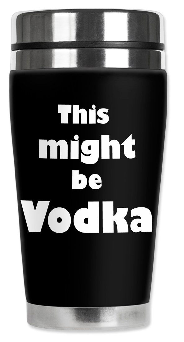 Mugzie Might be Vodka Travel Mug with Insulated Wetsuit Cover, 16 oz, Black best Food Storage