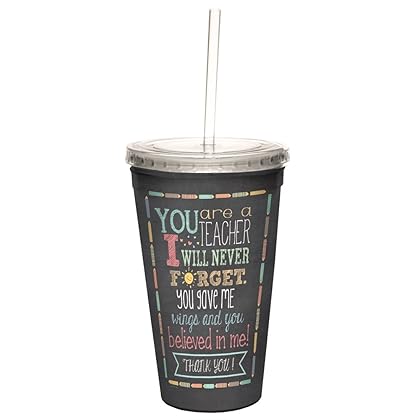 Tree-Free Greetings 98218 Jo Moulton Teacher Thanks Double-Walled Cool Cup with Reusable Straw, 16-Ounce best Food Storage