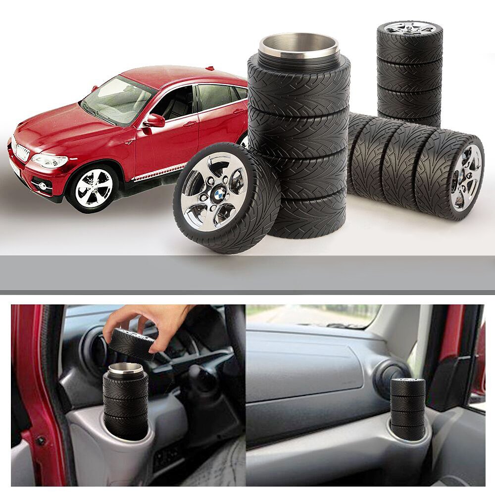 MIROO Rubber Coffee Tire Cups/Mug Stainless Steel Water Bottle Keep Coffee Warmer on Car 11 Oz,Black is best for youFeatures: Color: Black Capacity: 400ml Material: The cup adopt food-grade Slip-protective ABS plastic surface,304 stainless steel interior,healthy for drinking. The inside is made of stainless steel so it keeps your coffee/ beverage/water/tea warmer or cooler. The cup design is very clever, it like a really small car tires. it's one of the favorite and unique gift for car funs. The tire mug comes in a nice box to gift wrap or give to someone, it is a good choice as a birthday gift,Christmas gift, greeting gift for friends ect, they all will loves it!! The cup is a novelty tabletop cup for coffee milk or any beverage,you can use to storage any food. In addition it is collectible for car fans or who love cars. Notice: Complete cleaning for first use.