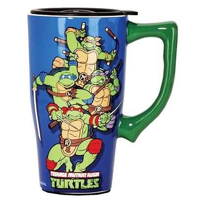 Spoontiques Ninja Turtles Travel Mug, Multicolor is best for youThis Ceramic Travel Mug is perfect for anyone on the go! With a locking lid and a skid plated bottom this mug is the perfect travel companion. The double wall insulation keeps drinks hot or cold and it is both microwave and dishwasher safe.