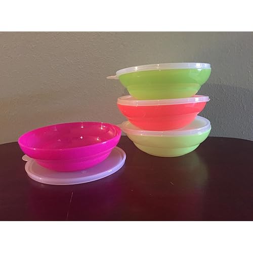Tupperware Classic Cereal Bowls in Electric Green, Electric Pink, Electric Orange, and Electric Yellow bowls with Natural seals is best for youTupperware Classic Cereal Bowls in Electric Green, Electric Pink, Electric Orange, and Electric Yellow bowls with Natural seals