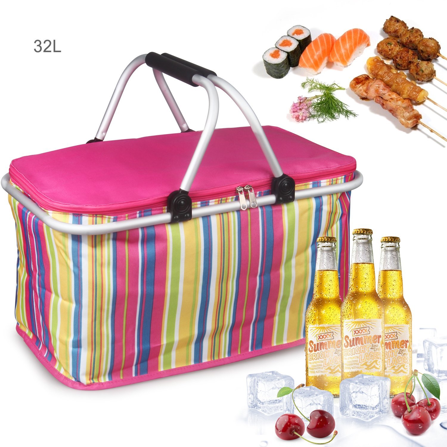 32L Large Family Size Picnic Insulated Bag, Oumers BBQ Meat Drinks Cooler Bag Ultra-size Folding Collapsible Basket for Holidays Parties Outdoor Travel , Picnic, Grill - Pink best Food Storage