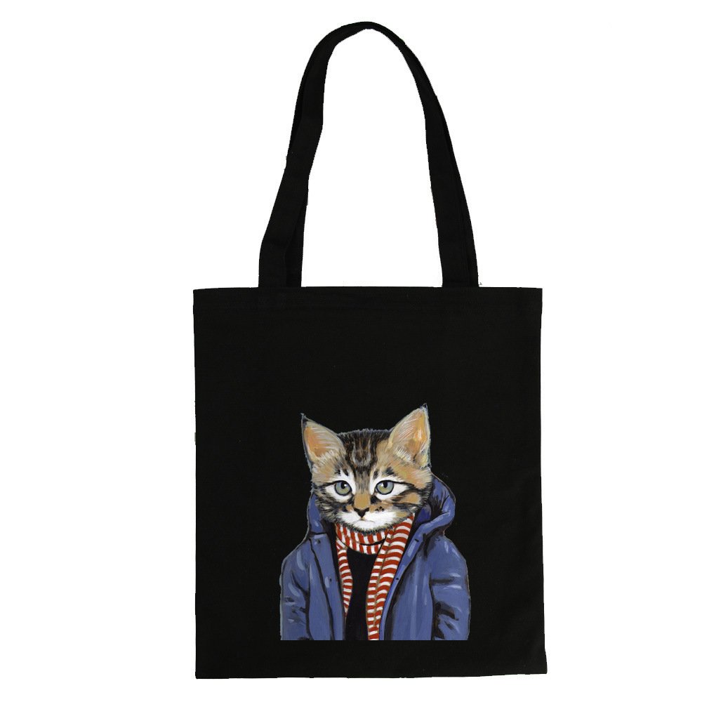 ASAPS Cat Black Printed Design Canvas Tote Bag (Sheldon) best Food Storage