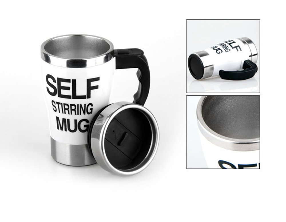 J-DEAL® 350ml Electric Self Stirring Mug Coffee Cup Stainless Steel Water Bottle Office Home Outdoor Gift Novelty (White) is best for youColor:White Features: Just press the button on the handle to do self mixing, easy and convenient. Mute mixing impeller and sealed mug cover, no need to worry about liquid splashing. High-quality stainless steel and food grade plastic made, safe and durable. Specifications: Material: stainless steel/food grade plastic Battery requires: 2 x AAA battery (NOT included) Dimension: approx. 13.5 x 11.2 x 8.88cm Volume: approx. 350ml Weight: approx. 330g