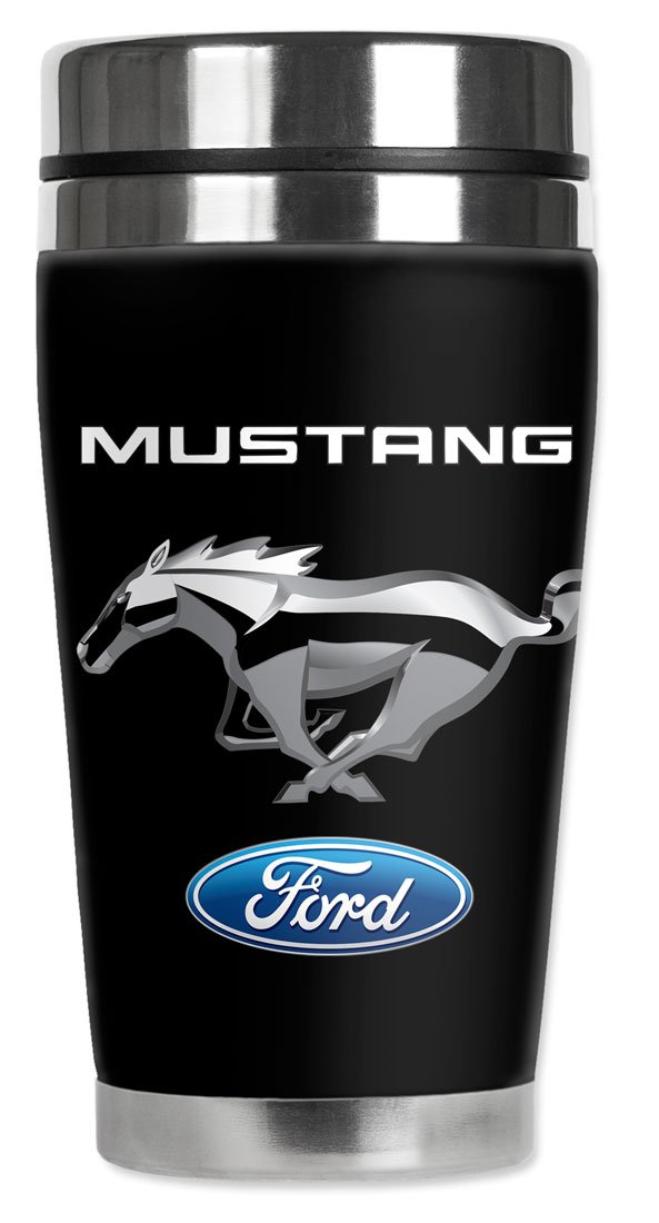 Mugzie Ford Mustang Chrome Pony Travel Mug with Insulated Wetsuit Cover, 16 oz, Black is best for youSize:16 oz | Color:Black Muglia brand travel mugs combine the excellent insulation and water-proof properties of neoprene wetsuit material and the usefulness of a spill-proof, stainless steel travel mug. The Mugzie's unique, hand-sewn fabric cover is made from 1/4 inch closed-cell neoprene that is covered with soft, water-proof polyester fabric. The stain-resistant cover is printed in hi-resolution and has full-wrap coverage. The Muglia has excellent insulating properties to keep beverages hot or cold. The cushioned cover affords a secure grip and eliminates condensation and sweating. Muglia travel mug fits in most car cup holders and the counter-weighted bottom provides stability. Use it for both hot and cold beverages. 16 Ounce Capacity. Features spill resistant lid and a non-skid bottom. Hand Wash. Made in the U.S.A. Patented. Ford logos and images licensed to Art Plates All rights reserved.
