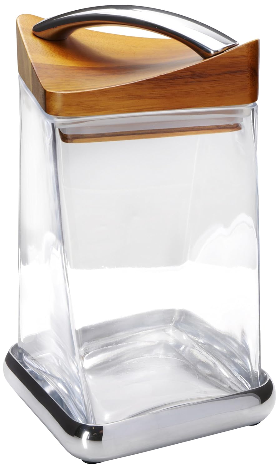 Nambe Twist Cannister, 8-Inch, Wood with Metal Alloy and Glass is best for youThe Twist Canister is both beautiful and functional, with classic good looks. This medium size is perfect for dried grains—from rice to steel-cut oats—as well as dried legumes and even pasta. The timeless design makes it attractive with most any kitchen style, the wooden lid adds visual warmth and a snug seal, and the ergonomic handle makes it easy to carry and open. Fabulous on its own, or in a set.
