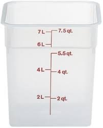 Cambro 8SFSPP190 Square Storage Container 8 Qt., 6 Pack is best for youThis Cambro Translucent 8 Quart Camsquare® Storage Container has multi use function for both commercial and home application. It can be used in the refrigerator, freezer or dry storage withstanding temperatures of -40 to 160° F. The graduated polyproylene construction is stain resistant to food acids and oils, is easy to read at a glance and provides some content visability. The molded-in handles provide for effortless lifting and transport. The containers are stackeable. Covers sold separately. Dishwasher safe.