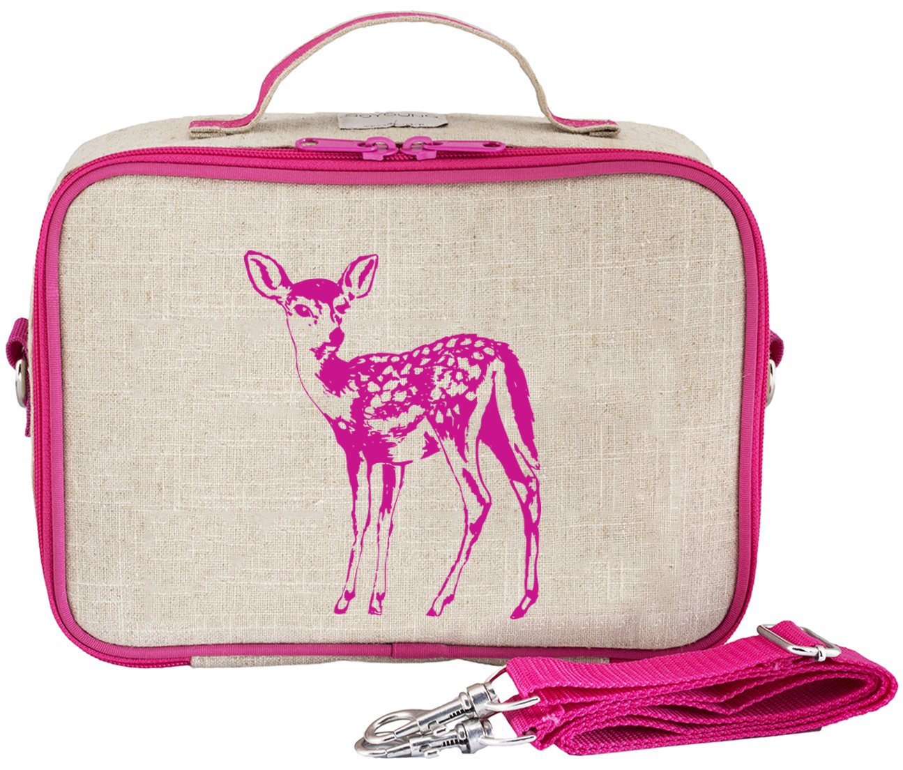 SoYoung Pink Fawn Lunch Box, Raw Linen is best for youNothing makes a child feel more like a big kid than the first lunch box they can call their very own. Ours are made of uncoated linen (makes them machine washable!) and have a clean, modern feel with a palette of retro-inspired designs to suit every taste. Wear it backpack or messenger style for hands free adventure outings! Every cooler bag and lunch box comes with a leak proof insulated insert for easy cleaning.