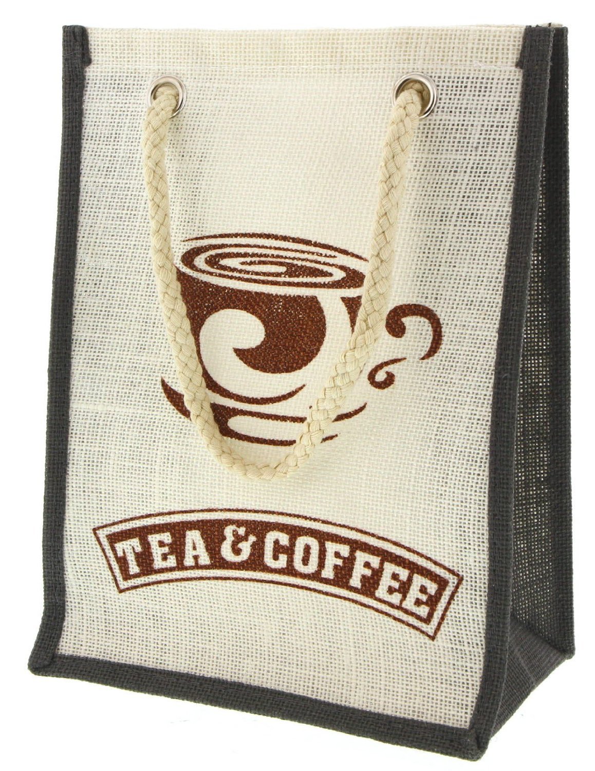 Eco Friendly Jute/ Burlap Natural Large Grocery Shopping Tote - Coffee Cup Design best Food Storage