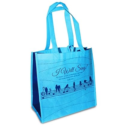 I Will Sing Bird Notes Psalm 108:1 Blue Reusable 12 x 12 Eco Friendly Tote Bag is best for youThese reusable shopping bags measure 12.5?? x 6?? x 12?? and feature Scripture verse. Some have contrasting side accent colors with a small loop for hanging. Perfect for groceries, Bible study or as an every day bag!
