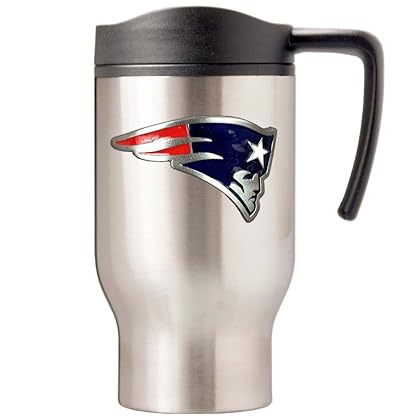 New England Patriots Stainless Steel Travel Mug is best for youShow off your pride by drinking from this Officially Licensed Stainless Steel Travel Mug with hand-crafted metal team logo. Fits in your vehicle cup holder, keeps drinks hot or cold and features a no spill lid.