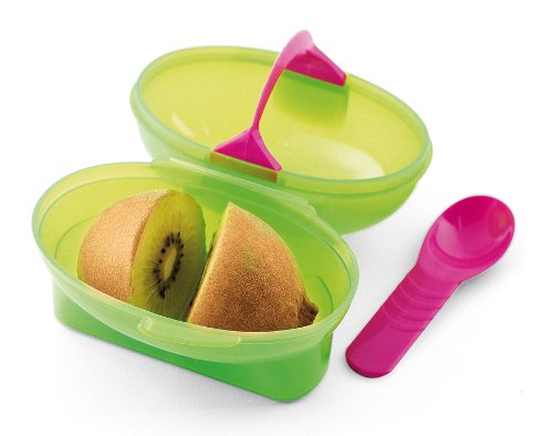 Hutzler nack Attack Kiwi to-Go Lunch Box is best for youThe perfect solution for enjoying a healthy kiwi snack away from home. The small container holds and protects the kiwi until ready to eat. Inside the container is a handy slicer to cut the kiwi in half, allowing you to then scoop out the delicious fruit with the included spoon. So compact and so easy. Dishwasher safe and BPA free. Reusable and recyclable.
