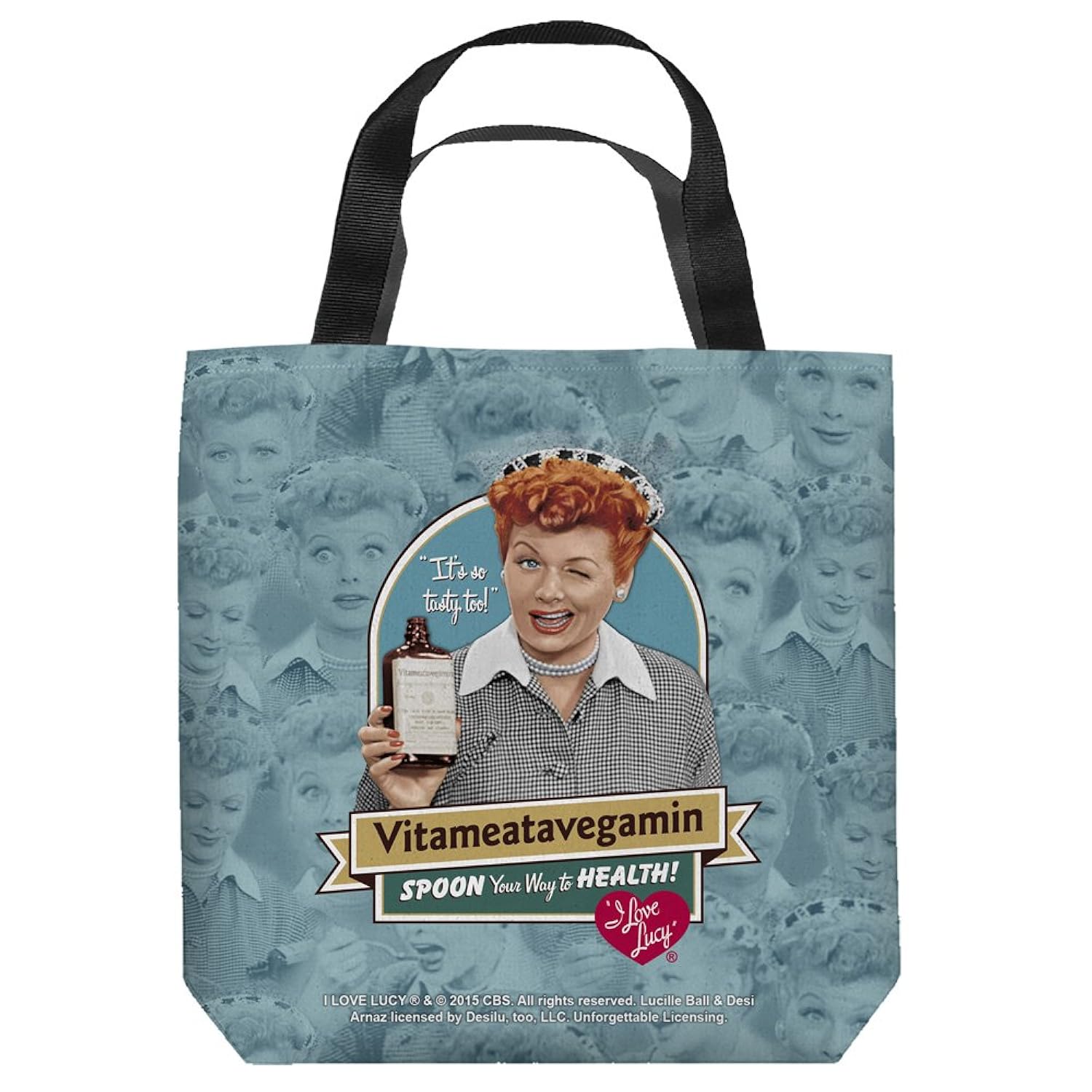 I Love Lucy Vitameatavegamin Tote Bag White 9X9 is best for youI Love Lucy is one of the all-time great comedies! It stars Lucille Ball And Desi Arnaz as Lucy and Rick Ricardo. Ricardo is an up and coming Cuban singer and Lucy aspires to be in show business but never seems to get all the way there. This show is an absolute classic!