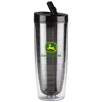John Deere Hot and Cold Vortex Tumbler is best for youDouble-wall insulated, BPA-free, acrylic. Screw-on lid has pull-up stopper for hot beverages and pull-up straw for cold beverages. Holds 20 oz. Hand wash only.