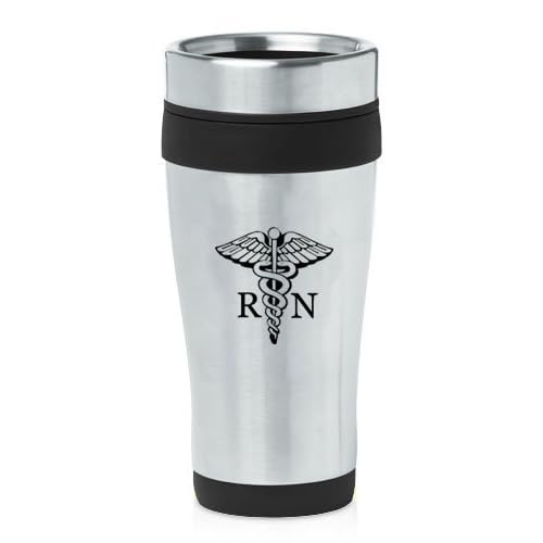 Black 16oz Insulated Stainless Steel Travel Mug Z650 Medical Symbol RN Registered Nurse is best for youBlack 16oz Insulated Stainless Steel Travel Mug Z650 Medical Symbol RN Registered Nurse