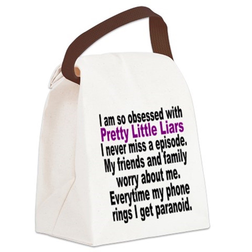 CafePress - Obsessed with Pretty Little Liars Canvas Lunch Bag - Canvas Lunch Bag with Strap Handle is best for youNever lose your lunch again with this custom canvas handle lunch bag. 12.5' x 8'x 5.5' canvas.