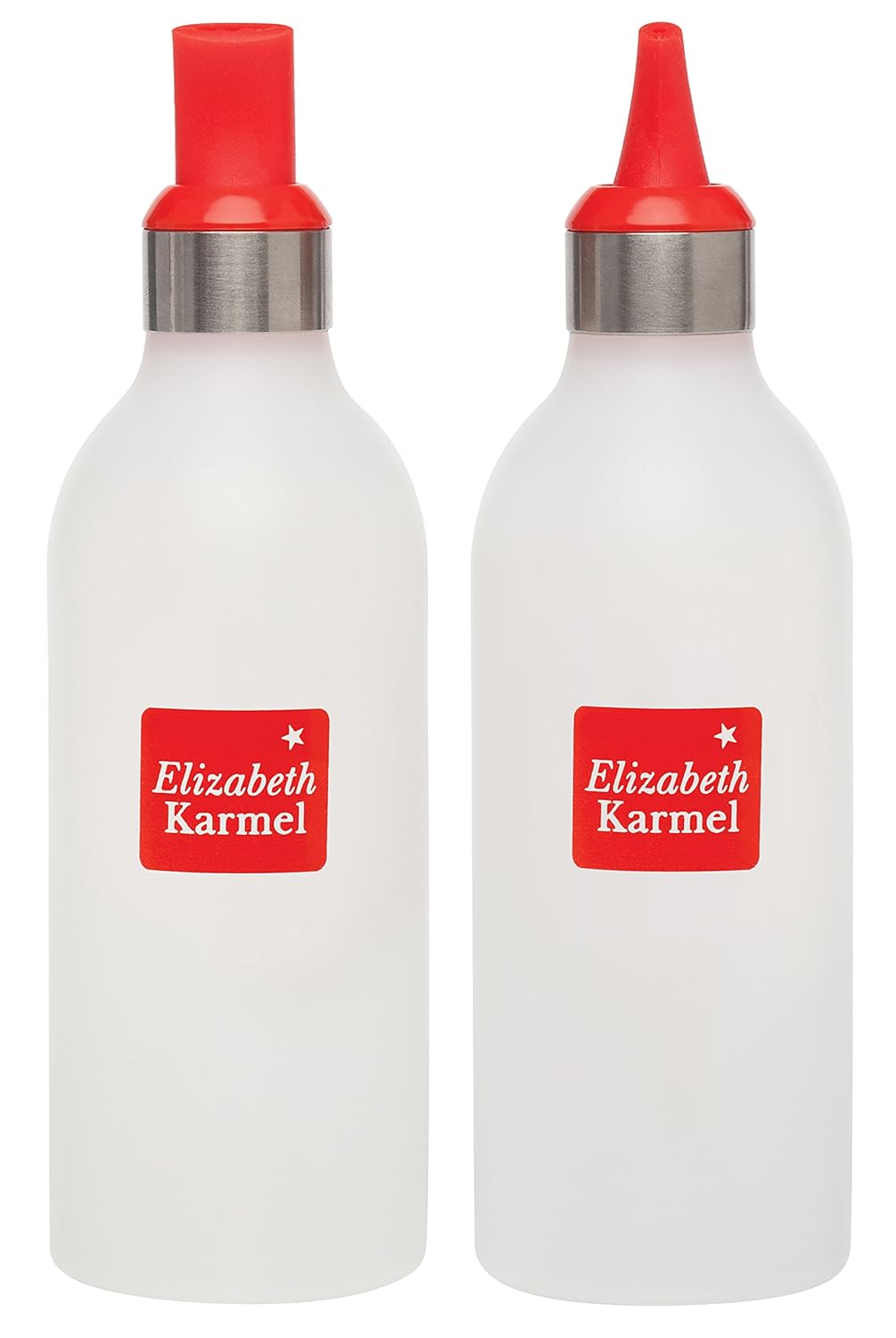 Elizabeth Karmel's Saucy 16-Ounce Squeeze Bottles with Decorator Tips, Set of 2 is best for youElizabeth Karmel's saucy squeeze bottles and decorator tips set makes saucing foods and decorating plates as easy as cook, plate and decorate! the set includes 2 multi-purpose squeeze bottles, each with 16-ounce capacity, and 2 non-stick decorating tips; 1/2-inch wide tip for creating ample lines and curves, and 3/16-inch round tip for accurate and detailed saucing. Recipes and simple instructions are included for both savory and sweet saucing. Simply fill the bottles with room-temperature sauce, choose desired decorator tip and let the inner food artist go wild! the squeeze bottles are pliable, for accurate and controlled saucing, and translucent to easily identify the sauces inside. The BPA-free plastic squeeze bottles and non-stick, silicone decorator tips are dishwasher safe, so cleanup couldn't be easier. Allow bottles to dry thoroughly before storing.