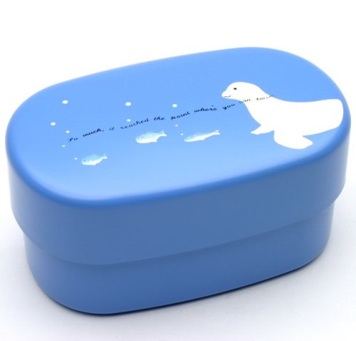 Kotobuki 2-Tiered Bento Box, Blue Seal/Fish is best for youKotobuki bento are Japanese style lunch boxes. The stacking two tiers keep foods and flavors separate and the top tier has a press on lid to prevent spills. Durable, attractive, and easy to clean. Microwave and dishwasher safe. Made in Japan. Blue with seal and fish. 6-inch L by 3-3/4-inch W by 3-inch H.