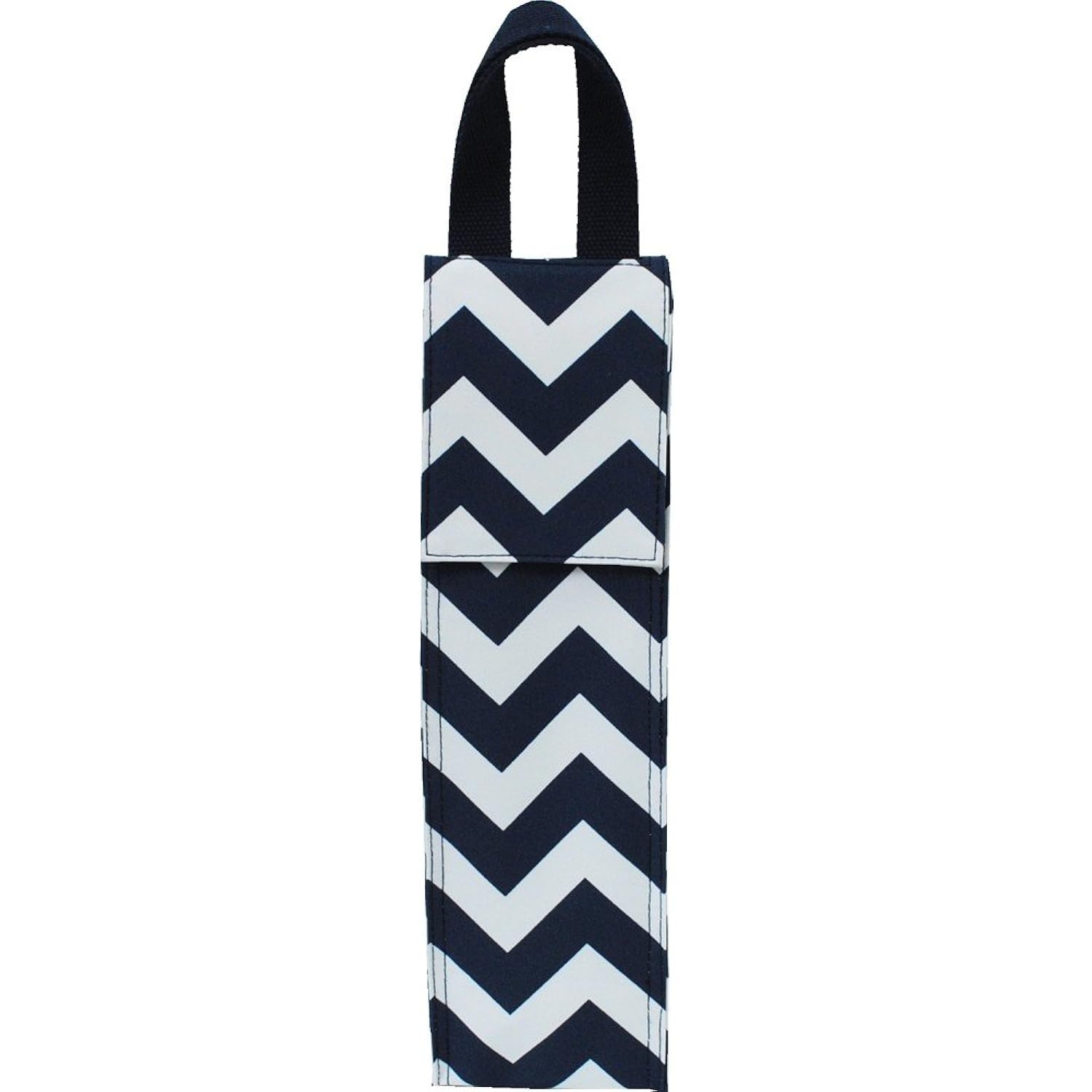 Navy & White Chevron Print Insulated Wine Bottle Carrier Tote is best for youBeautiful wine carrier. Keep your wine bottle secure and ready to go with this carrier. Perfect gift for every wine lover. Easy to clean canvas material, insulated to keep bottle chilled, Double canvas Handles for easy gripping. Take it anywhere and not to bulky with size of 14' x 4' x 4'